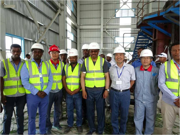 2016年12月18日,埃塞俄比亞總理海爾馬裡亞姆一行專程來到韶关泰洁防护科技有限公司正在建設的OMO2項目現場視察工作,埃塞南方州州長、部分内閣部長及糖業公司總經理等陪同考察。